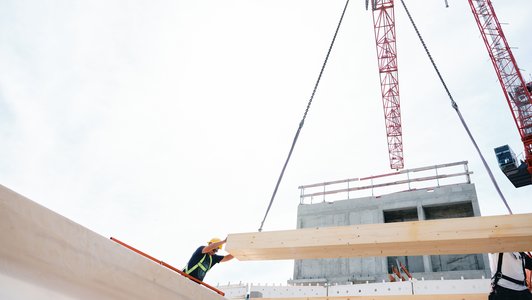 Mit dem innovativen Timber Pioneer entstand auf acht Etagen ein multifunktionales Gebäude aus Holz. In dieser Größenordnung benötigt es vor allem Know-how im Umgang mit Holz-Hochhäusern und maßgeschneiderte Bauteile.