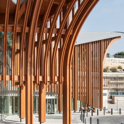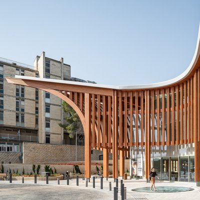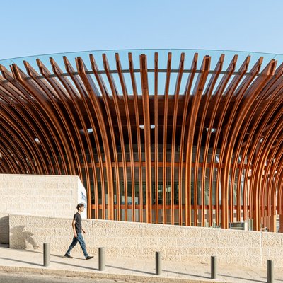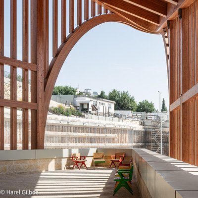 Für die Region stellt diese Holzkonstruktion eine wahre Innovation dar. Es findet sich in ganz Jerusalem kein vergleichbares Projekt, wo Holz das dominierende Fassadenelement darstellt.