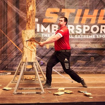 Beim anschließenden Abendessen zeigten die STIHL Timbersports® Athleten mit einer spektakulären Show ihr Können.