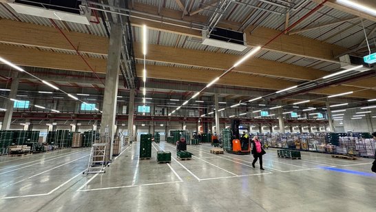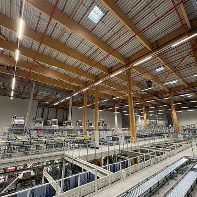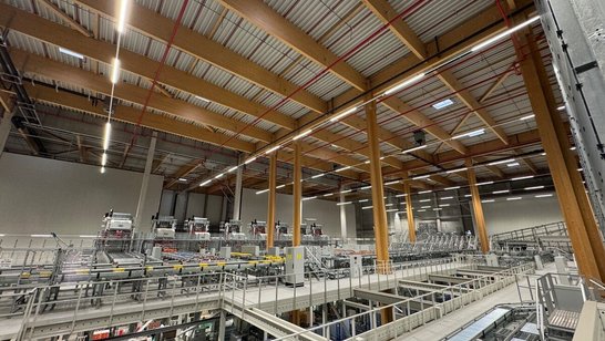 The entire building concept is designed with energy efficiency in mind: A large-scale photovoltaic system and on-site combined heat and power units supply a portion of the facility’s electricity needs. In addition, over 40,000 m² of roof area have been planted with extensive green roofing to further support the site’s sustainable performance.