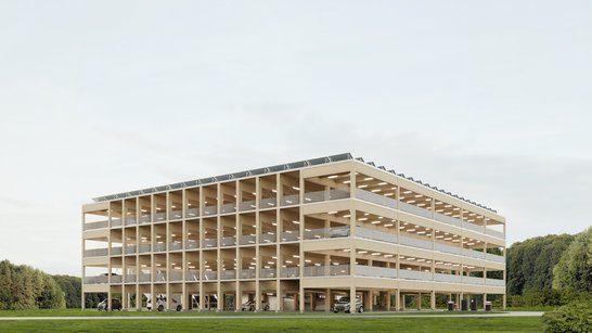 Brainergy Park Jülich is planning a modern, sustainable multi-storey car park to serve as a Smart Timber Mobility Hub. The planned 200 parking spaces are intended to provide start-up teams, businesses and visitors to the Brainergy Hub with optimal parking and mobility options.